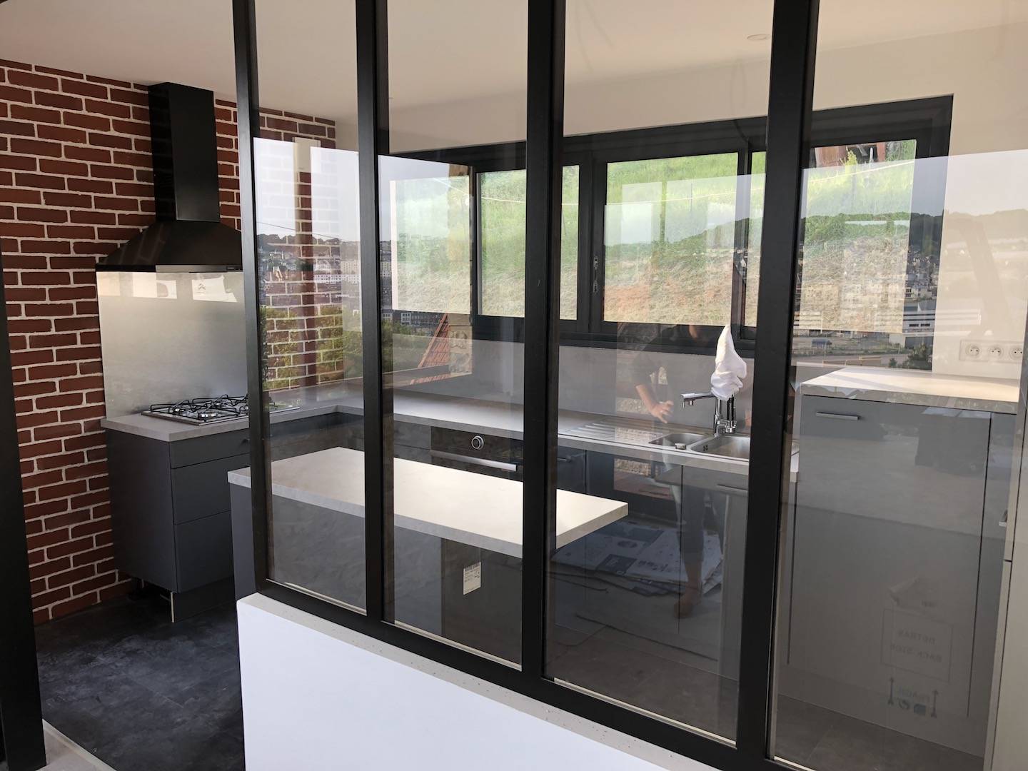 La verrière ajoute un superbe cachet ainsi que le mur Brique.