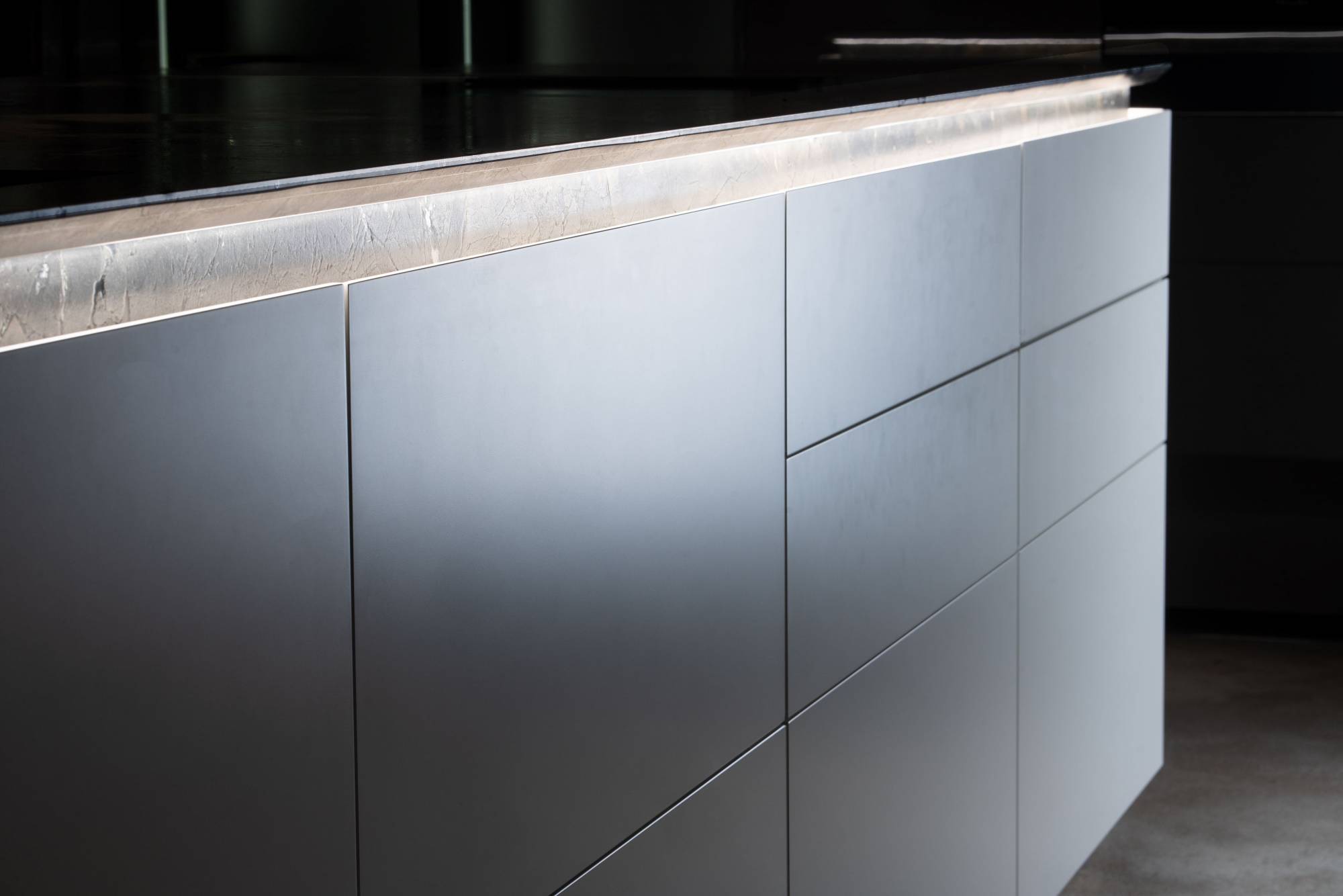 Pour entrer encore un peu plus dans le détail, on peut regarder les plinthes en lamelles inox qui sont du plus bel effet.