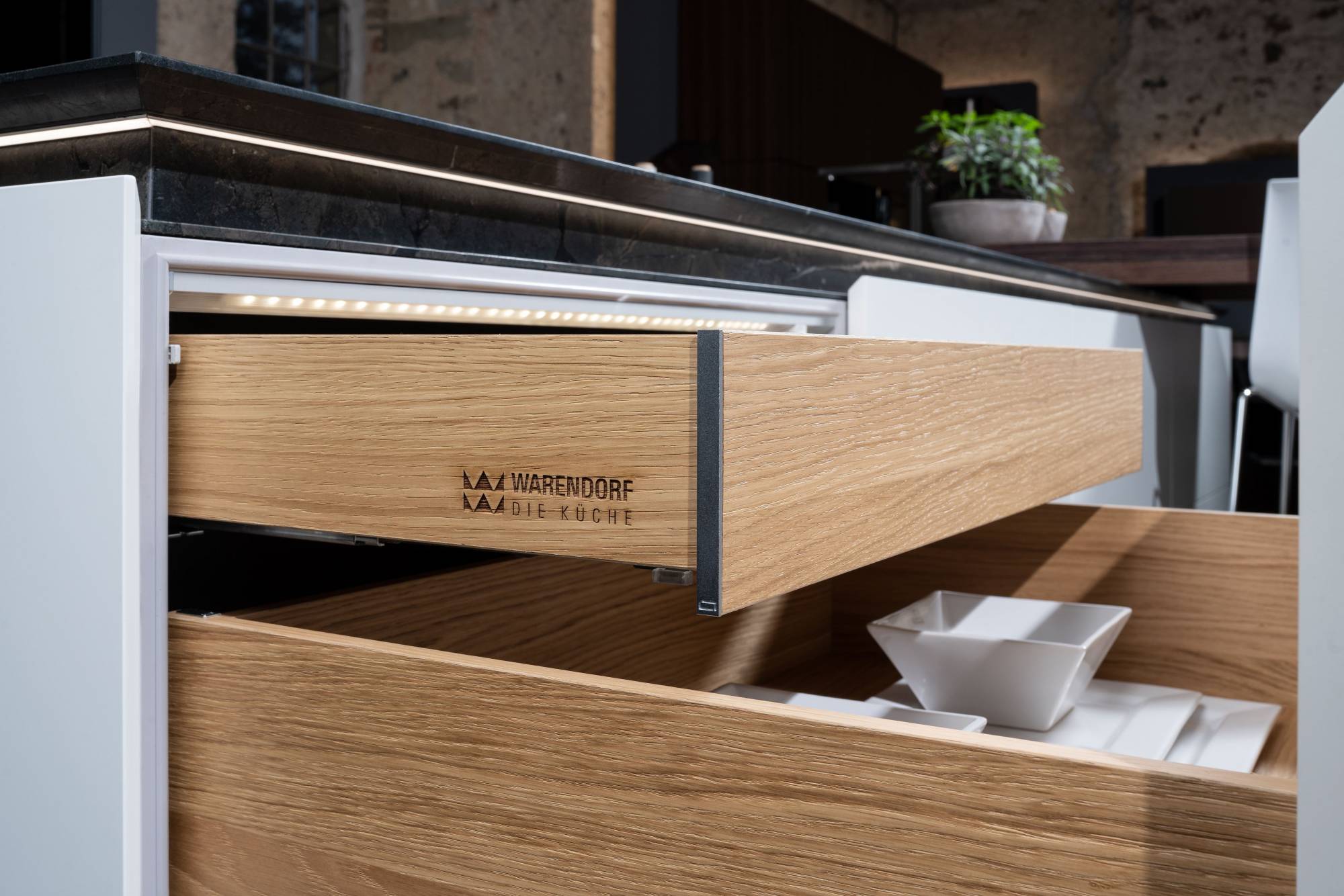 Les cuisines Warendörf ont un caisson garantie 30 ans et des charnières de marque BLUM garanties 20 ans.