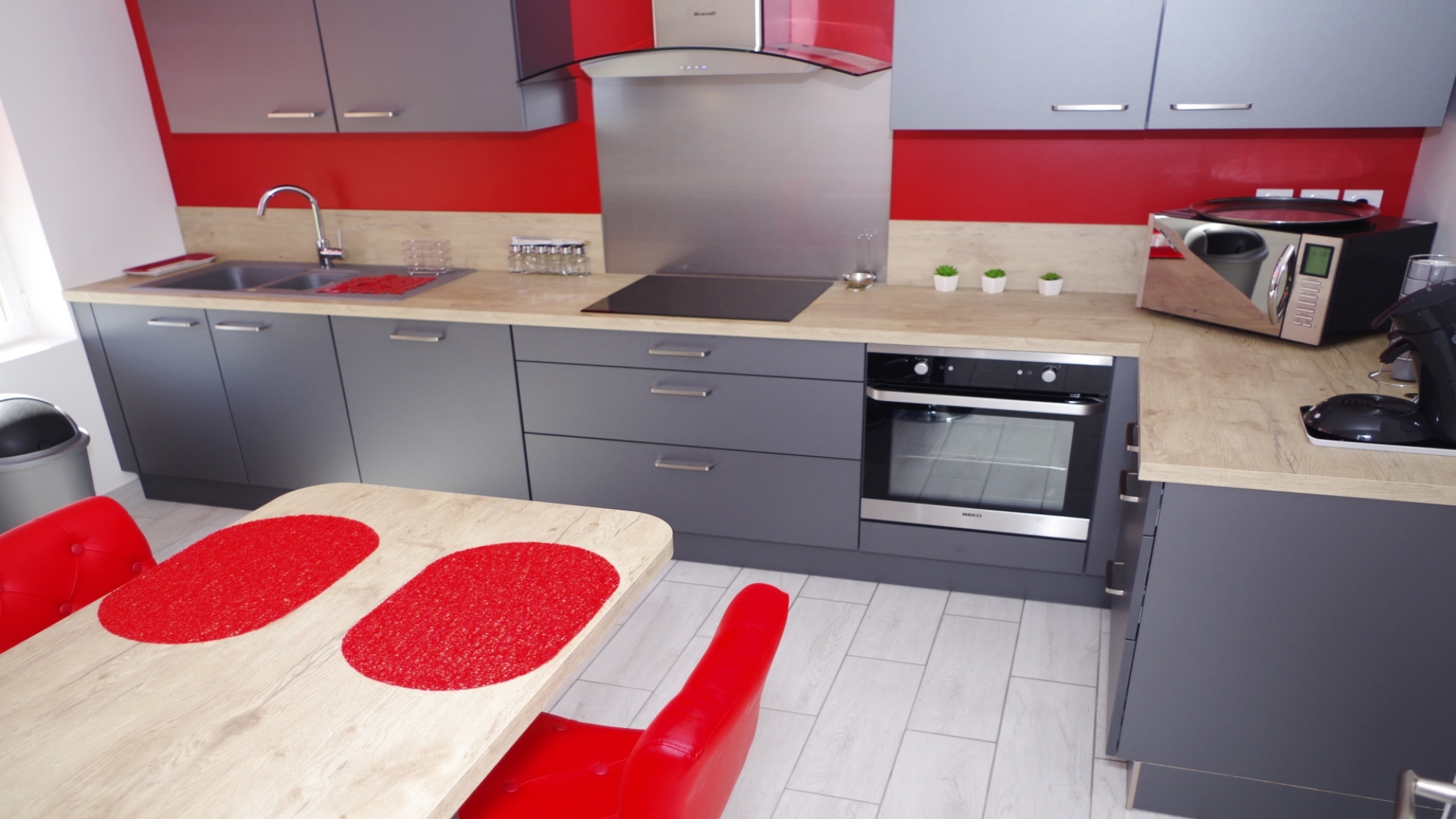 Cette cuisine est composée de facade mélaminée grise éligible à notre gamme économique !